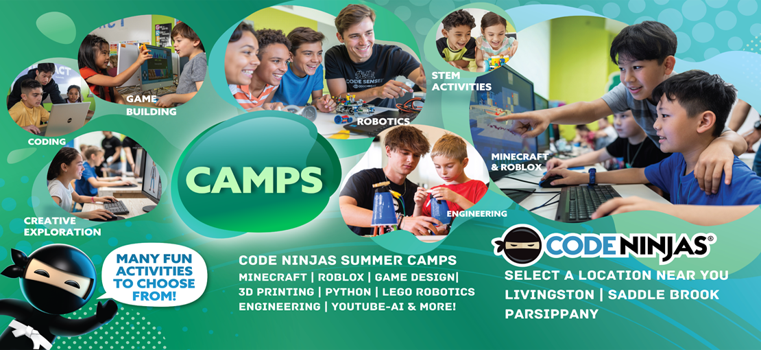 Level up your child’s break with Code Ninjas Camps—where creativity meets cutting-edge technology in an action-packed learning adventure! 🚀 From building games and worlds in Minecraft and Roblox, to designing real creations with 3D printing, programming robots, and exploring the exciting possibilities of AI, every day is a new mission filled with discovery and fun.