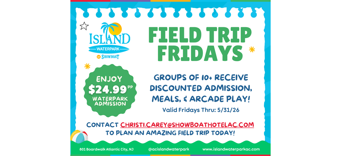 Make a splash with field trip fridays at Island Waterpark! If you have a group of 10 or more, take advantage of exclusive perk like discounted admission, meal vouchers, arcade play and more. It's the ultimate way for students nd teachers to enjoy endless fun all in one place.