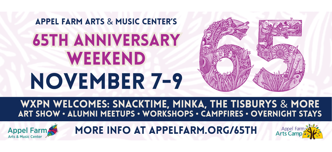 For more than six decades, Appel Farm has been a home for creativity and community in South Jersey. Starting as a summer arts camp in 1960 and growing into decades of legendary music festivals that drew thousands from across the region, Appel Farm has long brought people together through the arts. This special event honors the spirit of the beloved Appel Farm Arts & Music Festivals (1989–2012) while looking to a future of even more connection through the arts.