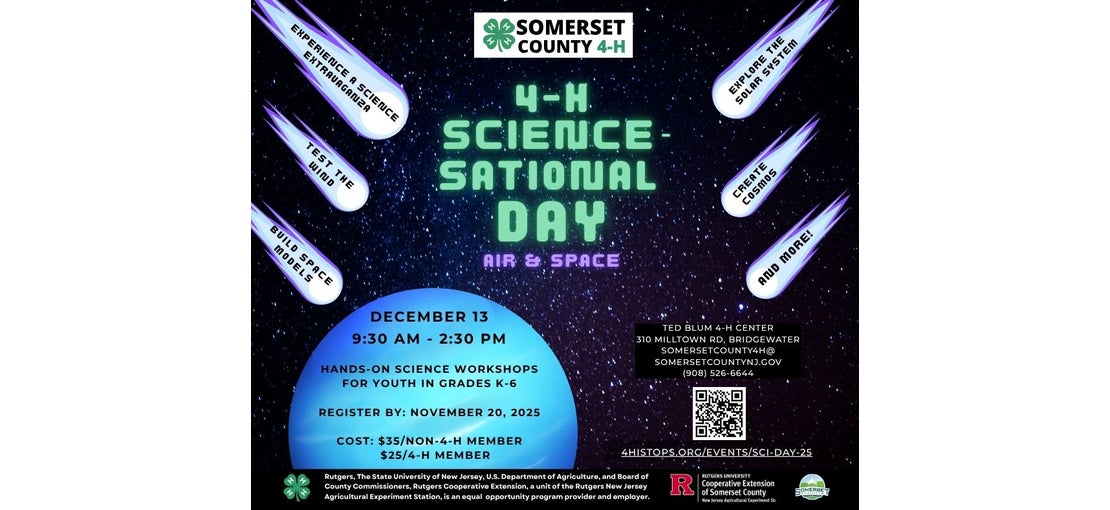 4-H Science-sational Day is a full day of interactive science workshops for youth in grades K–6. Using a “Learn by Doing” approach, participants dive into hands-on activities exploring a variety of science topics. The 2025 theme is Air & Space, featuring “Fizz Bang Boom: A Larger Than Life Science Show” presented by family entertainer Conrad Cologne.