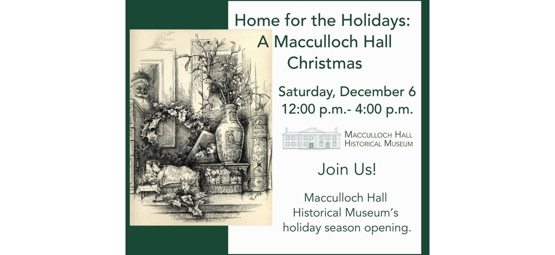 Join us for Macculloch Hall Historical Museum’s holiday season opening complete with “Not a Creature Was Stirring,” this year’s exhibition of Thomas Nast’s Santa Claus illustrations, children’s activities including letters to Santa and ornament making, hot cider and cookies on the front porch, and the historic period galleries decorated for Christmas.
