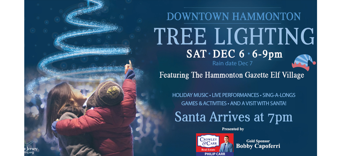 Kick off the holiday season in Downtown Hammonton with festive family fun. Explore the Elf Village with live performances and activities, watch Santa light the Town Tree at 7 PM, and visit him afterward at The Bellevue. Enjoy lantern displays throughout downtown and free trolley rides following the ceremony.