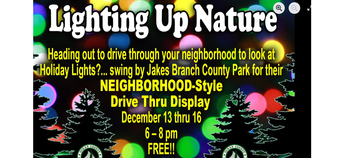 Enjoy an evening drive through the Discovery Play Trail at Jakes Branch County Park, decorated with festive holiday lights.