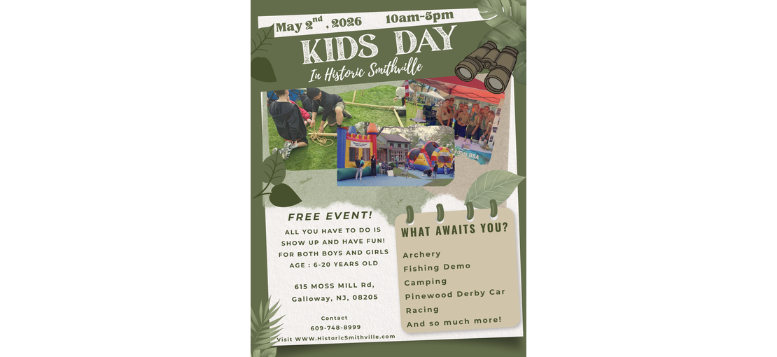 Historic Smithville offers 60 Shoppes, 7 eateries, carousel ride, and train ride, paddle boats, arcade, on site lodging at the Colonial Inn and over 26 free weekend events!