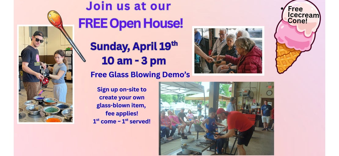 Come to the FREE Open House at Morris County School of Glass on Sunday, April 19, 10 am - 3 pm. Register online for FREE Demonstrations, Ice Cream, and Live Music. Sign up NOW! FREE Open House Sign Up for Your Special Time